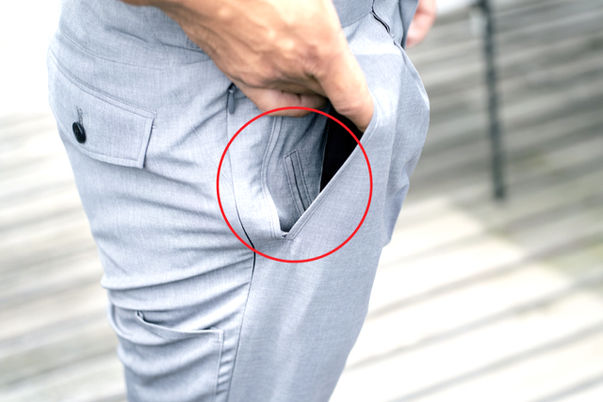 ポケットの開口部や深さ、角度に独自の工夫を施すことで、動作時や座った際にも中身が落下しにくい設計となっています。これにより、安心して貴重品を持ち歩くことができます。